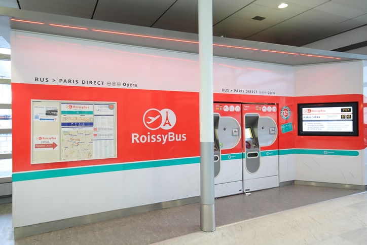 יש מכונות לכרטיסים RATP בתחנות RoissyBus מחוץ לטרמינלים של שדה התעופה, בהן ניתן לקנות כרטיסים במזומן (מטבעות ושטרות).